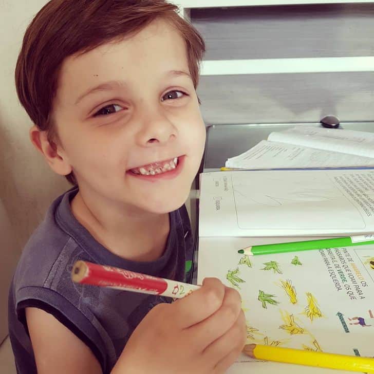 O português foi aprendido posteriormente, por volta dos cinco anos, após início na escola e acompanhamento pedagógico. Ainda assim, segundo a família, o idioma continua sendo o de maior dificuldade.